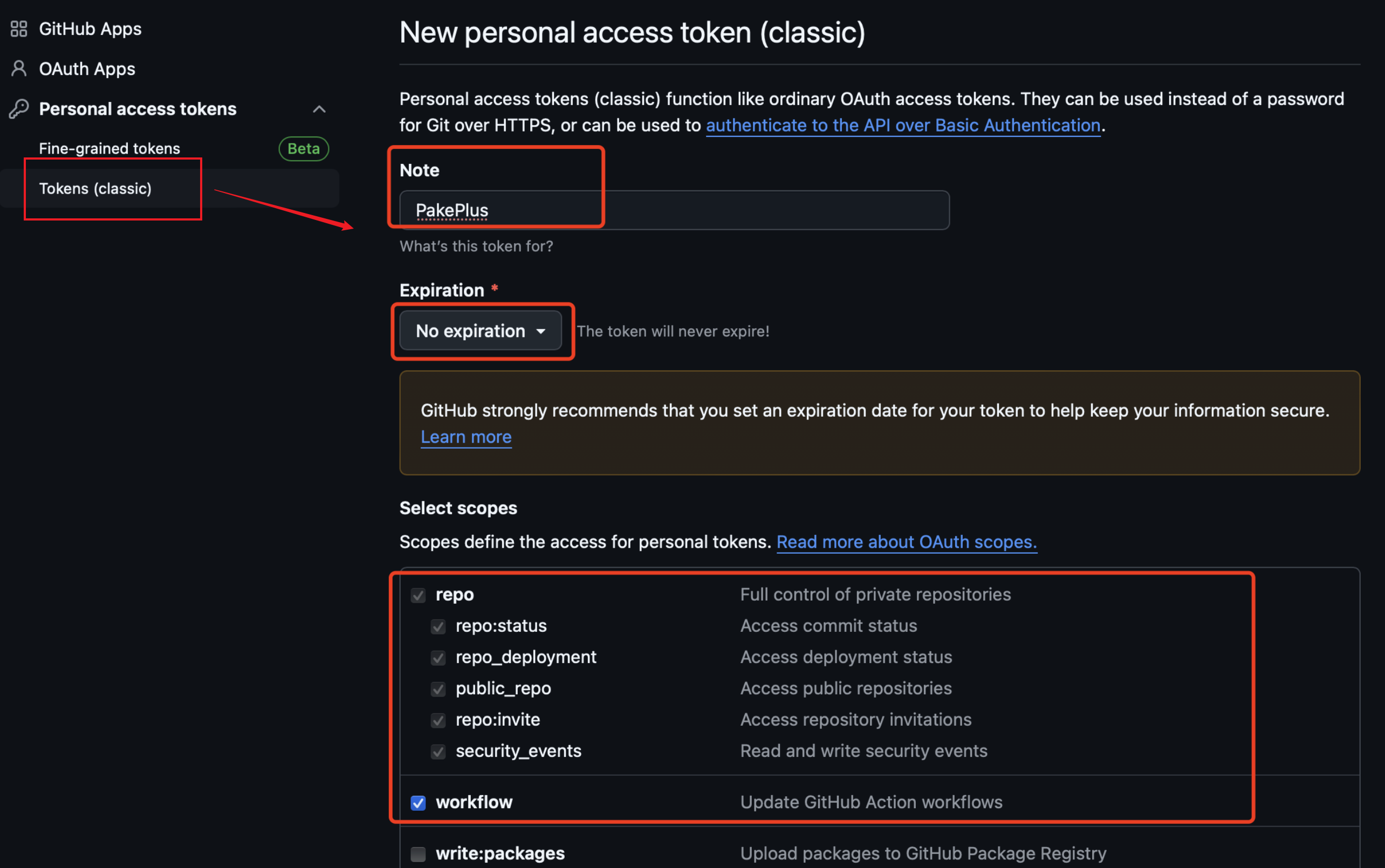github 提供两种 token 类型,任意一种都可以,点击下面链接直达: