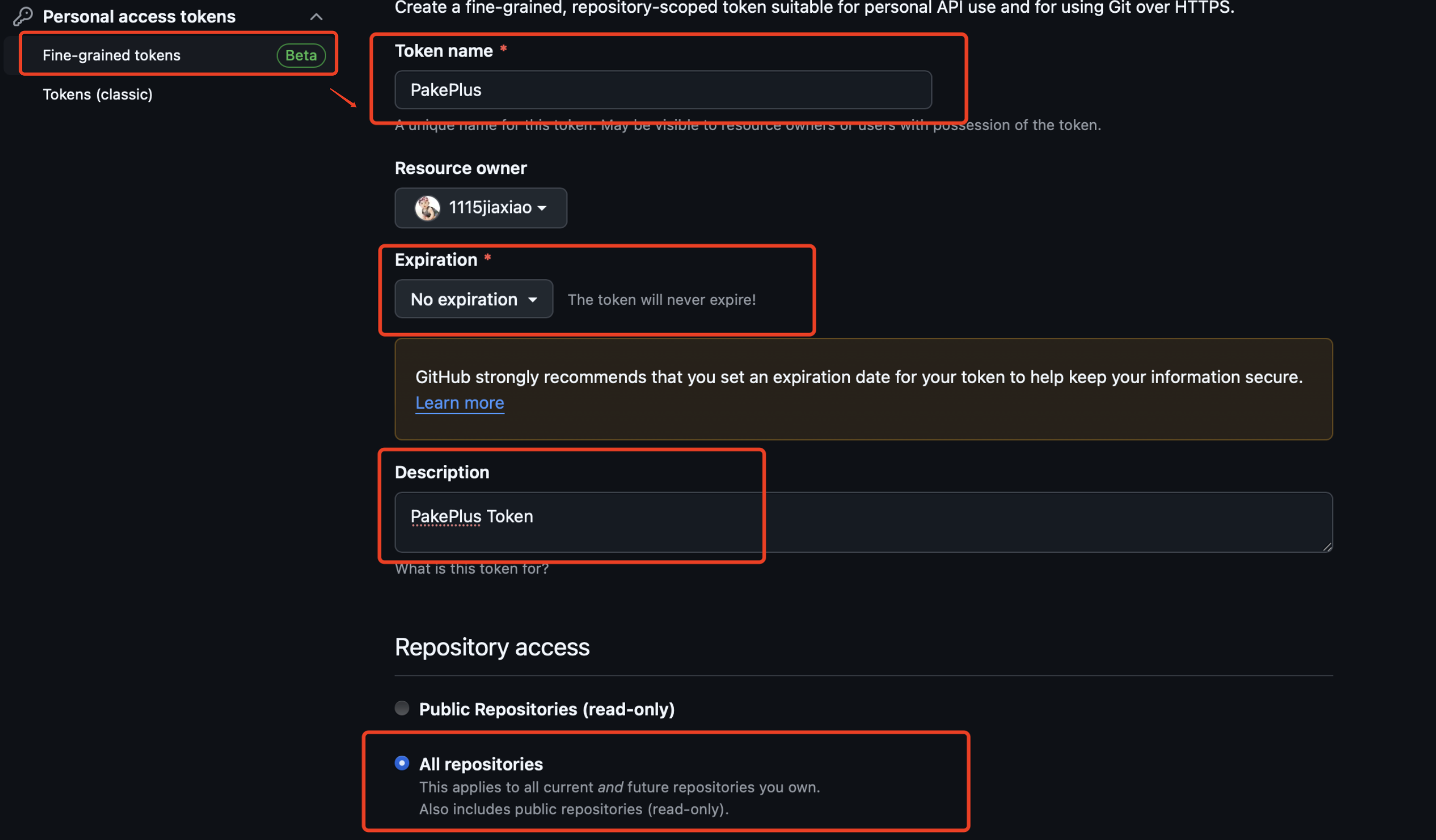 Fine-grained personal access tokens 。Personal access tokens (classic) 获取操作:
