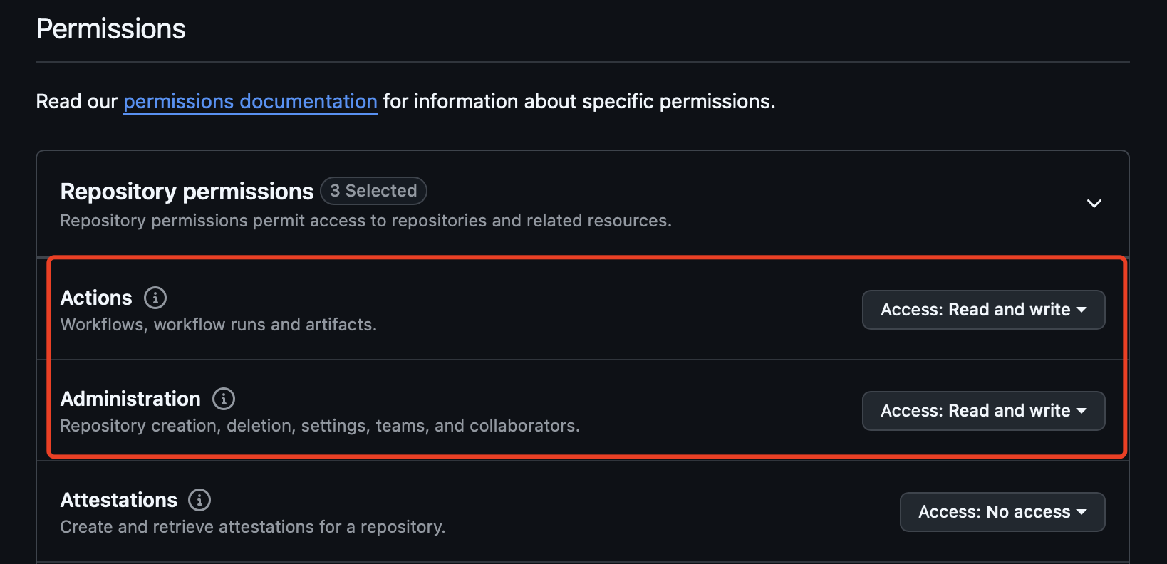 配置权限:赋予红框标注的权限,Access 选择: Read and write